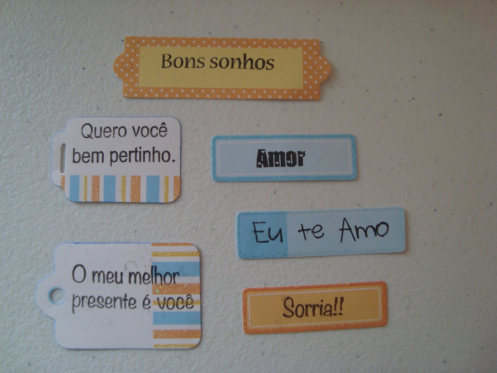 Entre algumas paginas do meu mini tenho uns "bolsinhos", entao eu fiz algumas tags grandes para colocar mais fotos e tags menores para as mamães escreverem.